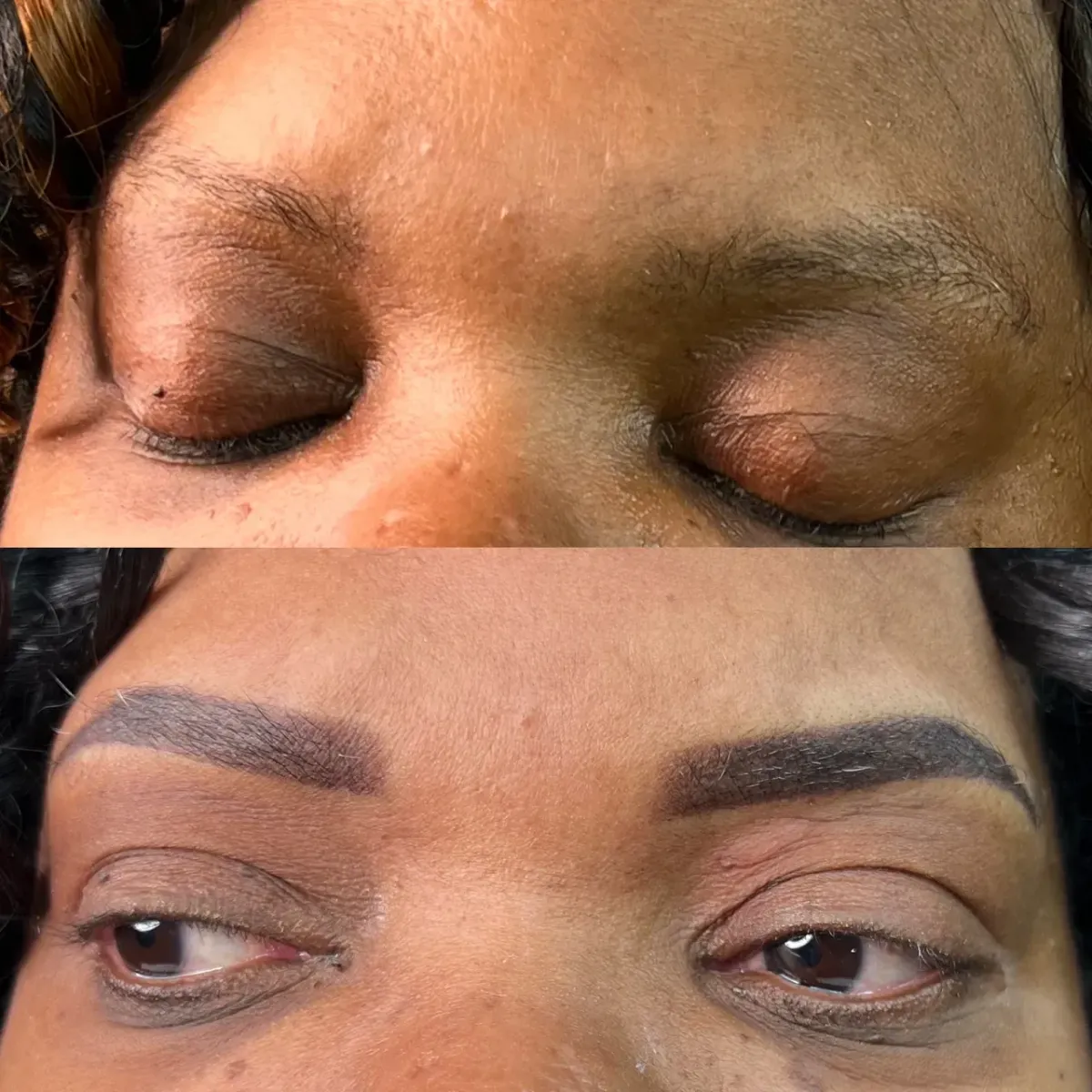 If your previous brow work has faded or discolored, our correction service restores a natural tone and shape. We carefully neutralize unwanted hues and redefine your brows to bring them back to life.